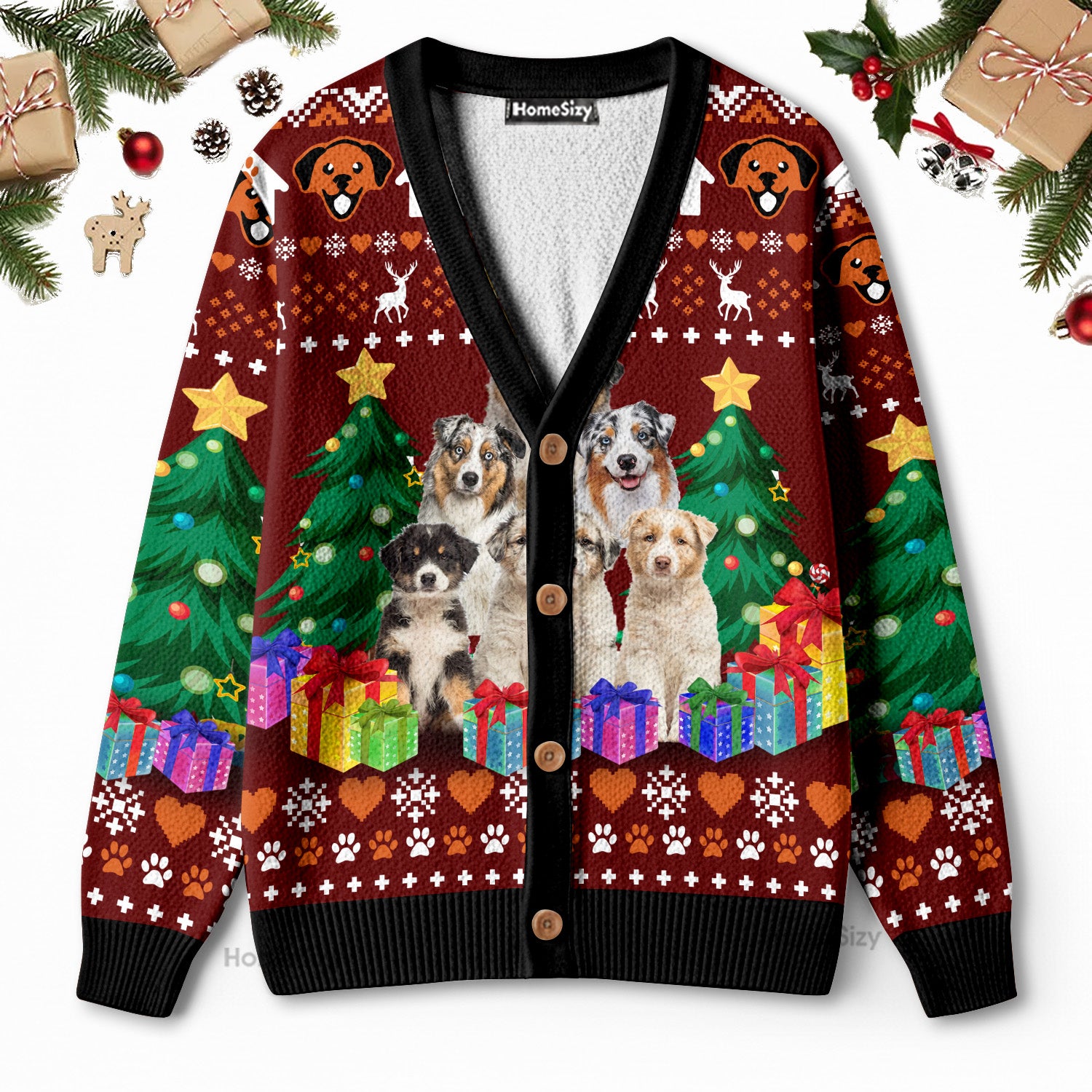 Australian Shepherd Pine Tree - Christmas Gift For Dog Lovers - 3D Ugly Christmas Cardigan QT309783