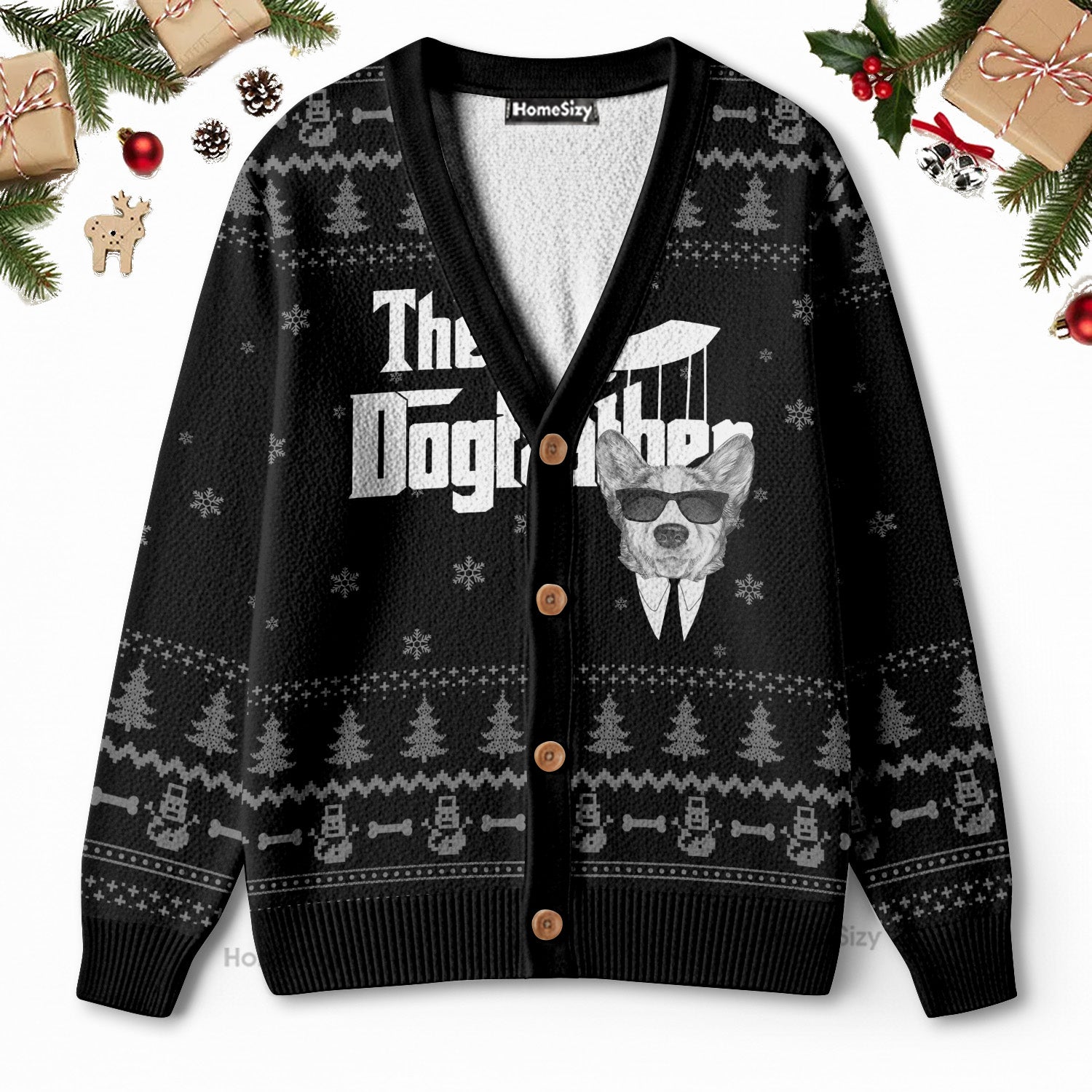 The DogFather Corgi Black - Christmas Gift For Dog Lover - 3D Ugly Christmas Cardigan QT309766