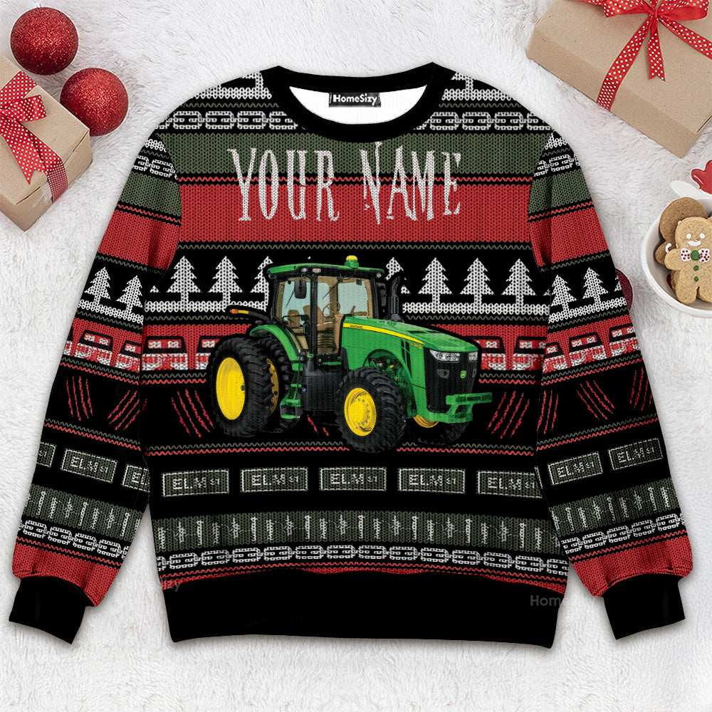 Custom Name Tractor - Personalized Ugly Christmas Sweater QT309319