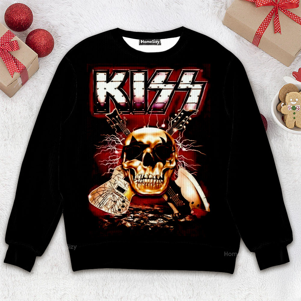 Kiss Rock Roll Skull - 3D Ugly Sweater QT309839