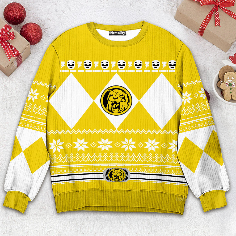 3D Mighty Morphin Yellow Power Rangers Custom Cosplay Ugly Sweater QT211318Hf