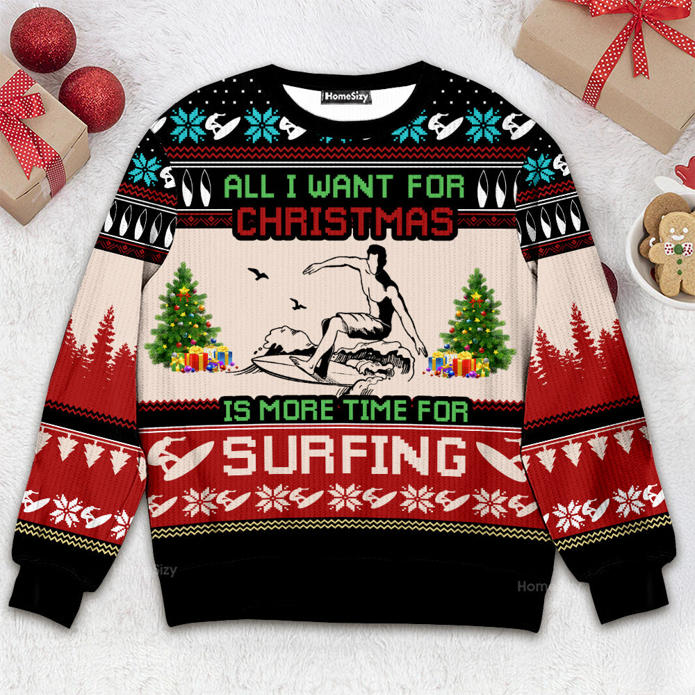 All I Want For Christmas Is More Time For Surfing - 3D Ugly Christmas Sweater QT309226