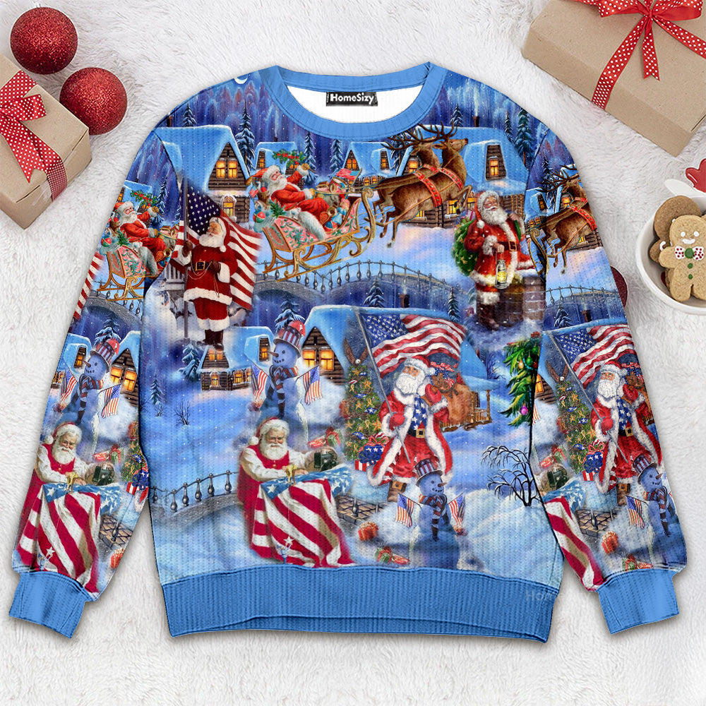 America Christmas Patriotic Santa Claus - 3D Ugly Sweater Sweatshrit QT309704
