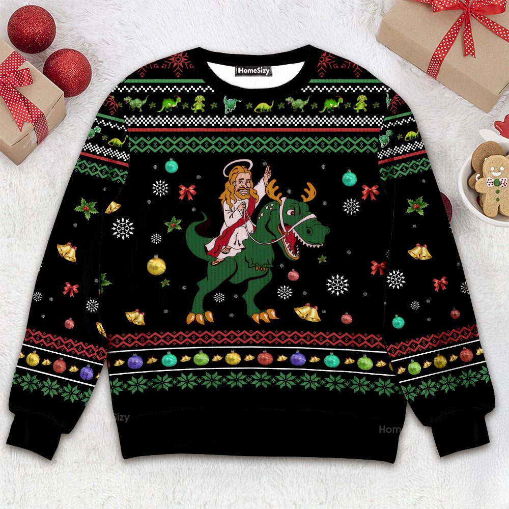 Jesus And Dinosaurs Christmas Ugly Sweater QT309404