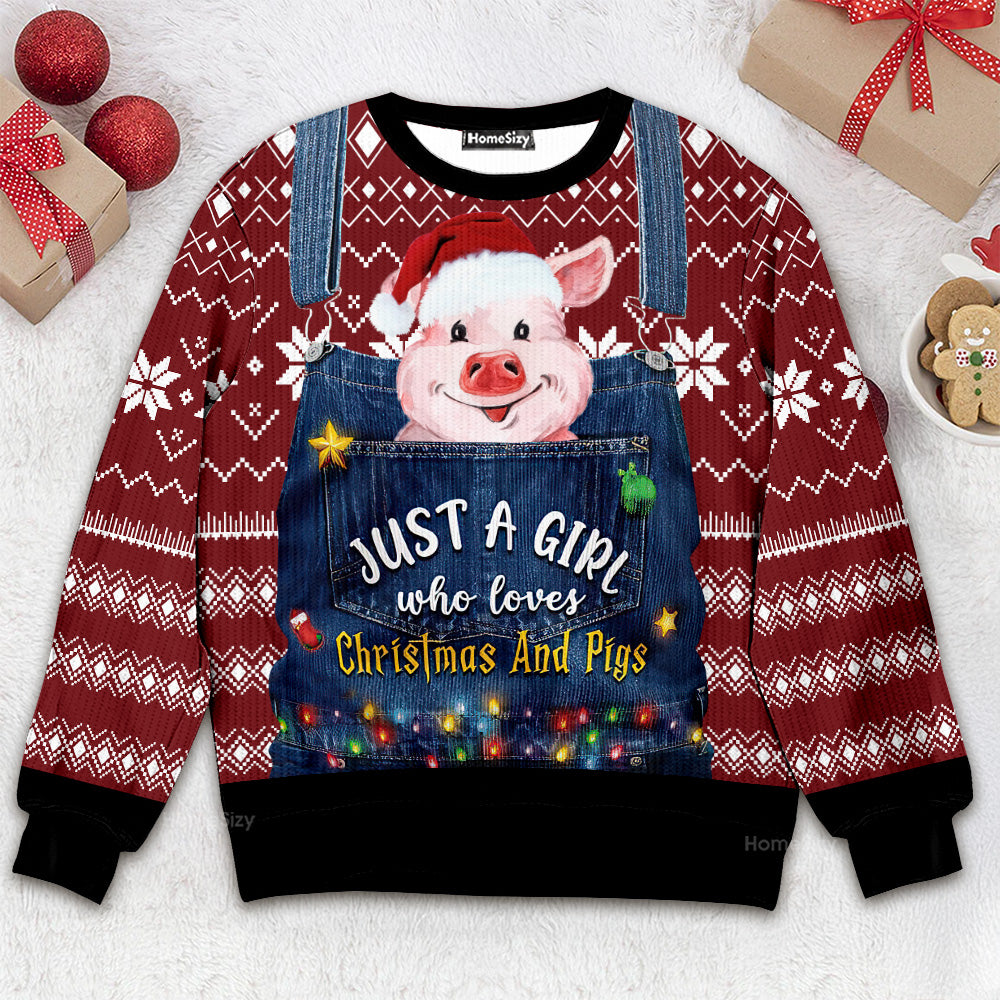 Just A Girl Who Loves Christmas And Pigs - Ugly Christmas Sweater QT309361