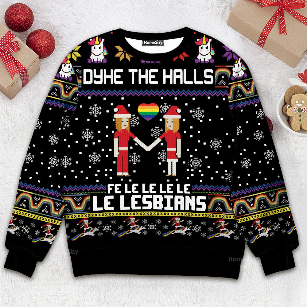 Dyhe The Halls Felelele Le Lesbians LGBT - Ugly Christmas Sweater QT309340