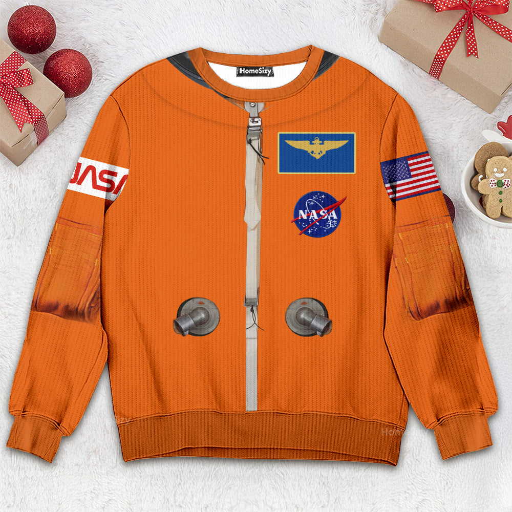 Custom Name NASA Orange Space Suit - Personalized 3D Ugly Sweater QT309646