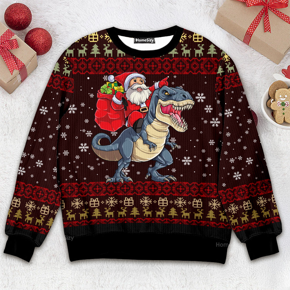 Santa Riding Dinosaur T Rex Funny - 3D Ugly Christmas Sweater QT309703