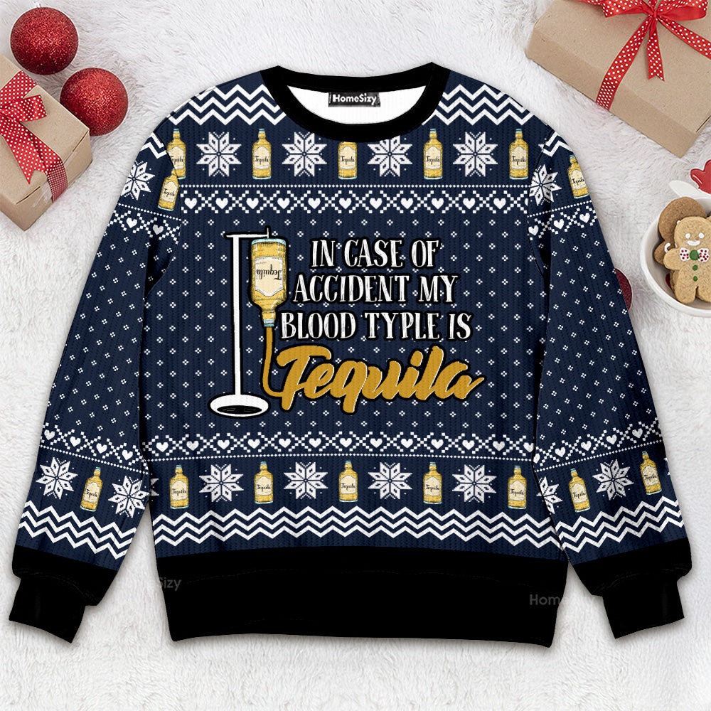 In Case Of Accident My Blood Typle Is Tequila - Christmas Gift For Adults - 3D Ugly Christmas Sweater QT309771